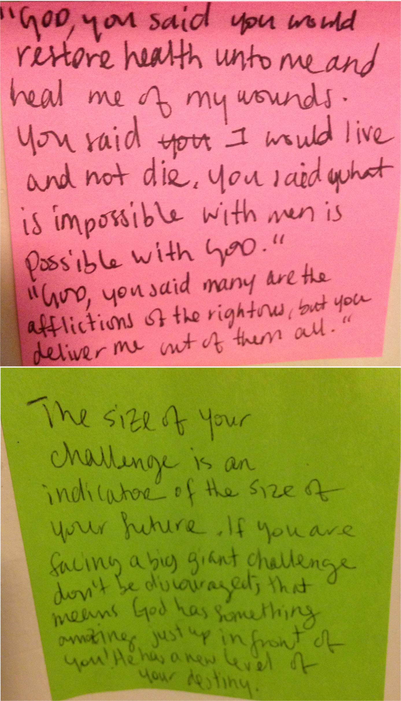 “God, you said you would restore health unto me and heal me of my wounds. You said I would live and not die. You said what is impossible with men is possible with God.”