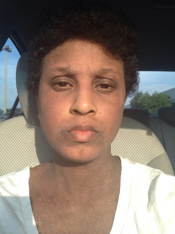 Definitely not my most flattering pic, but I like to keep it real and show you guys how I’m doing. This was taken while waiting in the car for my mom lol. You can tell I had some flaking going on and how tired my eyes are…surprisingly enough I actually got some decent sleep the night before. Can’t wait for that eyelid thickness to go down and for the discolouration on my face and neck to even out. Oh yea and I’ve scratched the crap out of my eyebrows again! Ugh, I’ll be putting some castor oil on them to help them grow. I believe rosemary essential oil is also great for hair growth! 😉