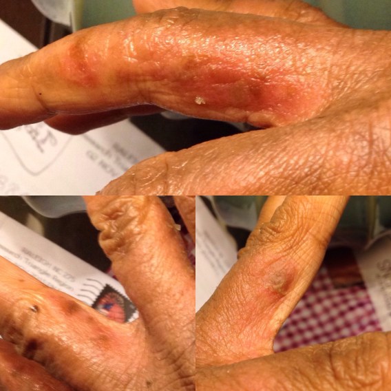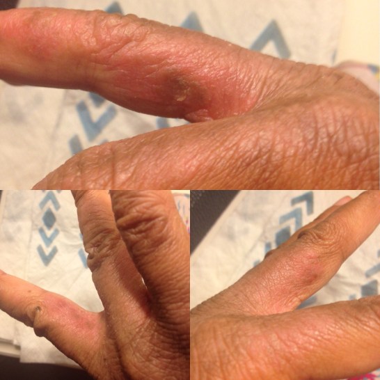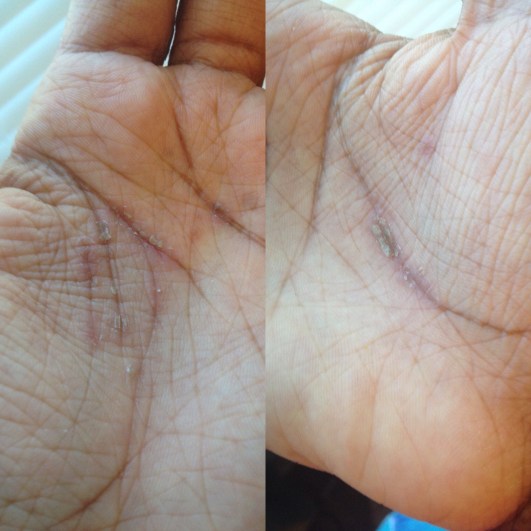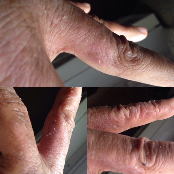 My hands were doing somewhat better, then went through some more irritation just from rubbing them. I’d try really hard to keep them dry but when they did get wet, they’d get super itchy and the rubbing would begin. So back to really raw fingers. 😢