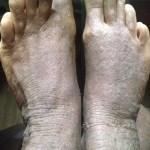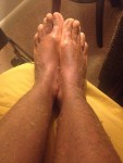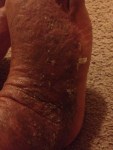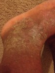-DAY 2 (jan.6th): I tried to keep my positive attitude up throughout the day, a get as much rest as possible because I had such a horrible restless night. The flaking, itch and tight skin kept me up all night, but thankfully I had only minimal oozing on my feet, thank God! The skin on my legs and feet were suuuuuuuper tight to where it had hurt to straighten my legs and just walking felt like the skin is pulling apart… I pretty much hobbled over when I would walk because bending was so agonizing 😦 ! Thankfully I felt some relief after showering.