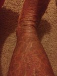 I definitely think the five day water fast has helped…once the crust and flakes finished coming off I noticed that I wasn’t oozing on my legs as much. This is March and I haven’t oozed and stuck to my sheets since those pictures from February 2nd! I’m just dealing with some itchy legs and flaking skin but when I scratch I can’t break the skin, it’s like it’s finally strong enough to not break into open raw sores or get oozy! My feet are the only spots that will get a little oozy and do the crusting crumbly flaking thing. Sometimes when I’m laying down I can feel them as if they have weights on them and they can get achy and throb., but I know that’s just the nerve pain and the skin healing itself.