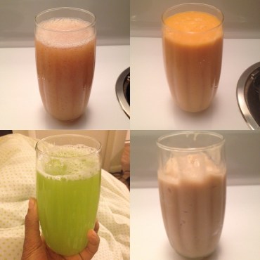 - Breaking my fast wasn’t terrible although I felt super drained that morning but the celery juice I had first thing perked me up and later I had two blended apples with water, then two banana and fruit smoothies a few hours apart and a green drink. I also had water in between my veggie and fruit juices.