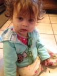Things are going well I’ve gathered a few pictures of her progress although I wasn’t documenting her skin issues until recently but I wanted to point out several things. The first picture was August of last year. I was using steroid cream 1% for a few months already and it had been 2 months since I started introducing solid foods, I didn’t monitor or watch out for food because I was told not to worry about what she ate. In the second pic she was starting to get a runny nose, puffy eyes and scratching herself a lot. I noticed her knees starting to get cracks and redness when I was visiting my grandmother in Florida (you can kind of see her redness on her left knee) and was told by my family to see a Doctor when I got back so I was slathering more on her legs. She has diaper rash at the time but I didn’t document that since I thought it was a normal response to her plastic diapers. It cleared her skin for a while, but as you can see her bags under her eyes darkened and she was prescribed a stronger prescription in January. I stopped giving her bread and started giving her green drinks (you can tell which picture that is!) and noticed an improvement but not a huge one. A month after steady hydrocortisone 2.5% treatment I noticed her flaring up in new areas around her body like her face hands and in between her thighs. She really struggled after being prescribed antibiotics for a paper cut infection. Turns out it was herepetic whitlow on her hand which is a virus so those antibiotics didn’t do anything except hurt her more. By the next month her hand was okay but her skin on her face and body was steadily getting worse and looking back I can see she was puffy around the eyes and blotchy skin. By the time I contacted you her skin was at its worst point and I stopped using the stronger cream and had gone back to 1% that previous month and had eliminated eggs by that point. Realizing it was something diet related because anywhere her poop touched her skin she would have a rash. So she began her plant based vegan diet 2 weeks ago (with only one Incident where she was given toast which is why she flared up badly) and within 2 weeks I can see her rash getting better. I was really amazed at the speed of it but as you can see in her pictures her knees look great, her skin tone looks better and best of all her mood, the scratching (you can see a few old scratch marks from before) and her skin has cleared. I still have a hard time believing how fast it’s happened but it’s been great and I’m totally convinced that she’s FINALLY getting the medicine she needs (plants!) and I hope my story can help other mothers realize that they CAN do something about eczema you don’t have to be a slave to lotions and creams and doctors bad advice! So thanks because without you she would be progressively getting worse and instead she is on the path to complete healing!!!
