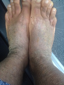 APRIL 4 2017 – The pics below is what it looks like when my skin has gone through the oozing and now it’s in the dry, crusted stage. It’s not pretty at all and can be quite uncomfy. It’s a lot better than the actual ooze though as that can be agony. When I’m going through an oozy period I like to take essential oil of oregano capsules. I will make my own of 4-6 drops of the oil (sometimes I add frankincense for pain and inflammation) into a veggie capsules and I’ll take this every 6-8 hours depending on the severity of the ooze. The oregano oil is anti fungal, anti bacterial, anti septic and is basically like a natural antibiotic. This is my most effective remedy for the ooze, I’m always amazed at how fast it cleanses and clears it up!