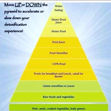 Above is a photo of a Food Detox Pyramid. This can show you how you can experience deep cleansing just with how you eat. The higher up the pyramid the deeper the cleansing and detox symptoms or healing crisis symptoms you can feel.