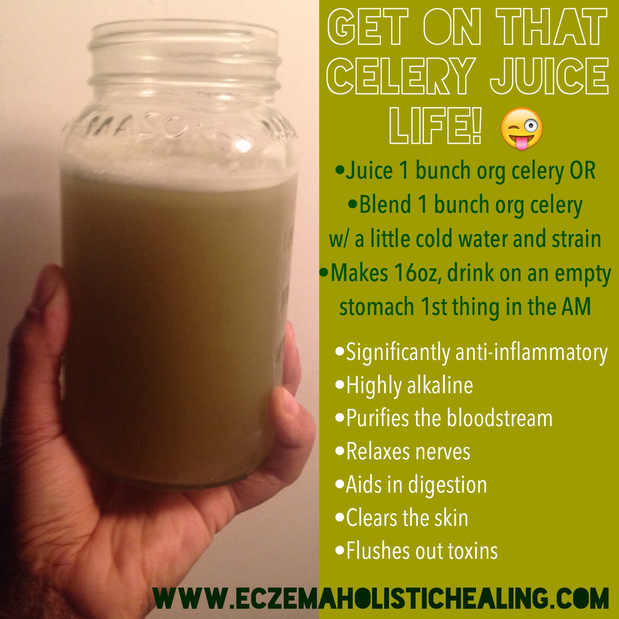 Celery juice also has significant anti-inflammatory properties making it highly beneficial for those who suffer from autoimmune conditions such as Fibromyalgia, Chronic Fatigue Syndrome, Migraines, Vertigo, IBS, Rheumatoid Arthritis, Psoriasis, Eczema, Acne, Lupus, Guillain-Barre, Sarcoidosis, Raynaud’s, Meniere’s, GERD, Bursitis, Restless Leg Syndrome, and Gout.