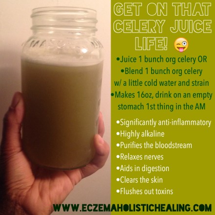I got inspired after the live coaching session that Abby & I held the other night for a group of eczema sufferers to get back on that celery juice routine! Abby reminded me about the benefits of drinking it and I started to remember how much I liked doing it every AM and how good my skin felt! I highly recommend adding this to your diet, I’m going to be more consistent with it from now on. Make sure you use organic celery, and you can use the Omega vsj843r slow masticating juicer, which you can find HERE. Making celery juice is super easy and healing for the body, inside and out! This is a Medical Medium practice, make sure to check out his site! http://www.medicalmedium.com/blog/celery-juice